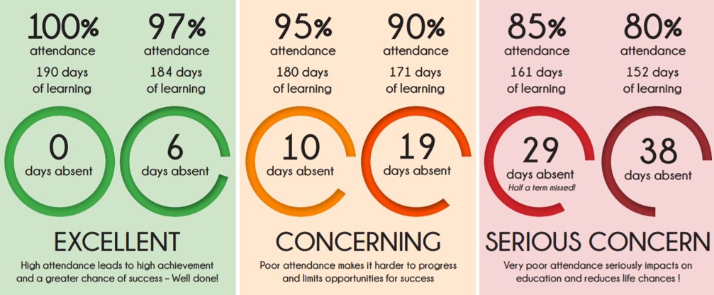 Research consistently shows a strong link between high attendance and academic success. Every child has the right to an education, and we encourage and expect 100% attendance for all pupils.